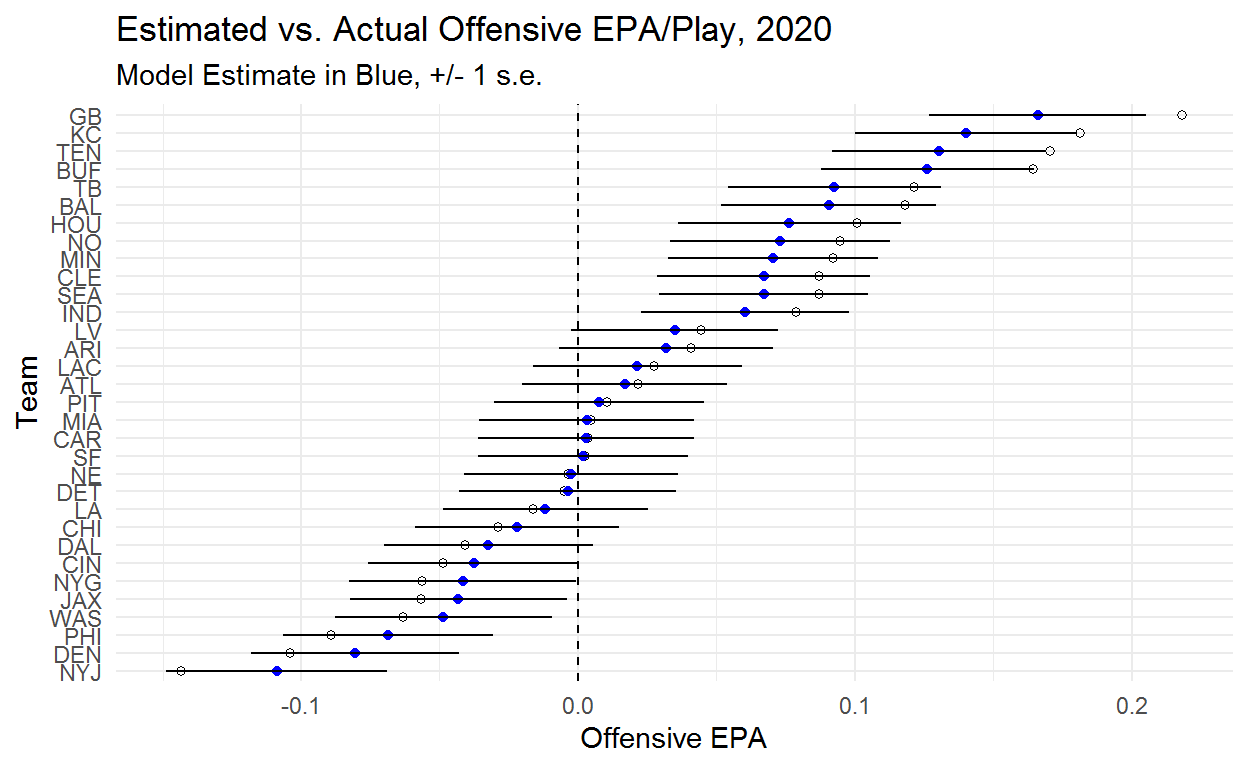 This article shows how to adjust a team's EPA per play for the strength of their opponent. The benefits of adjusted EPA will be demonstrated as well!