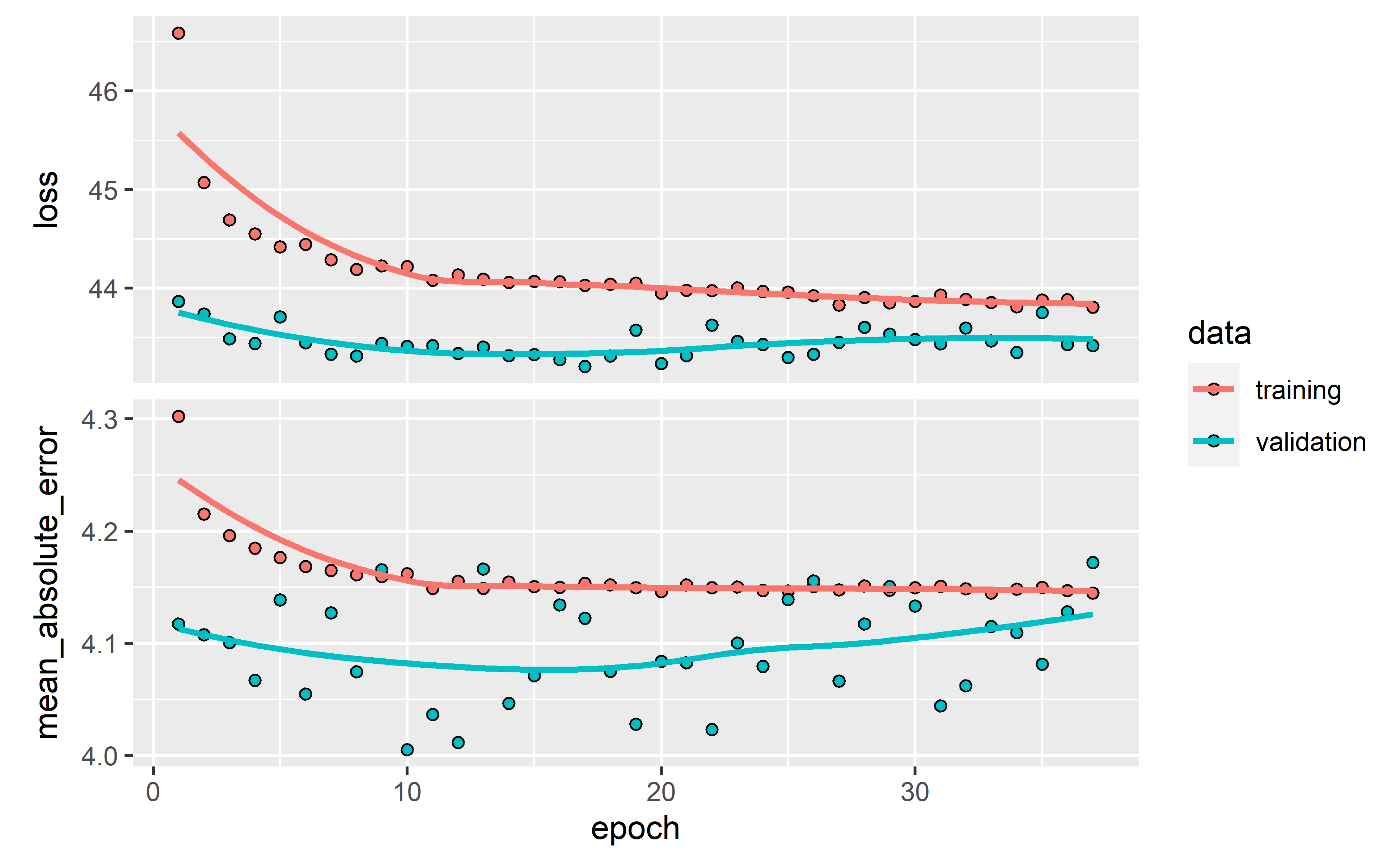 c(loss, mae) %<-% (model %>% evaluate(test_df %>% select(-label), test_df$label, verbose = 0))