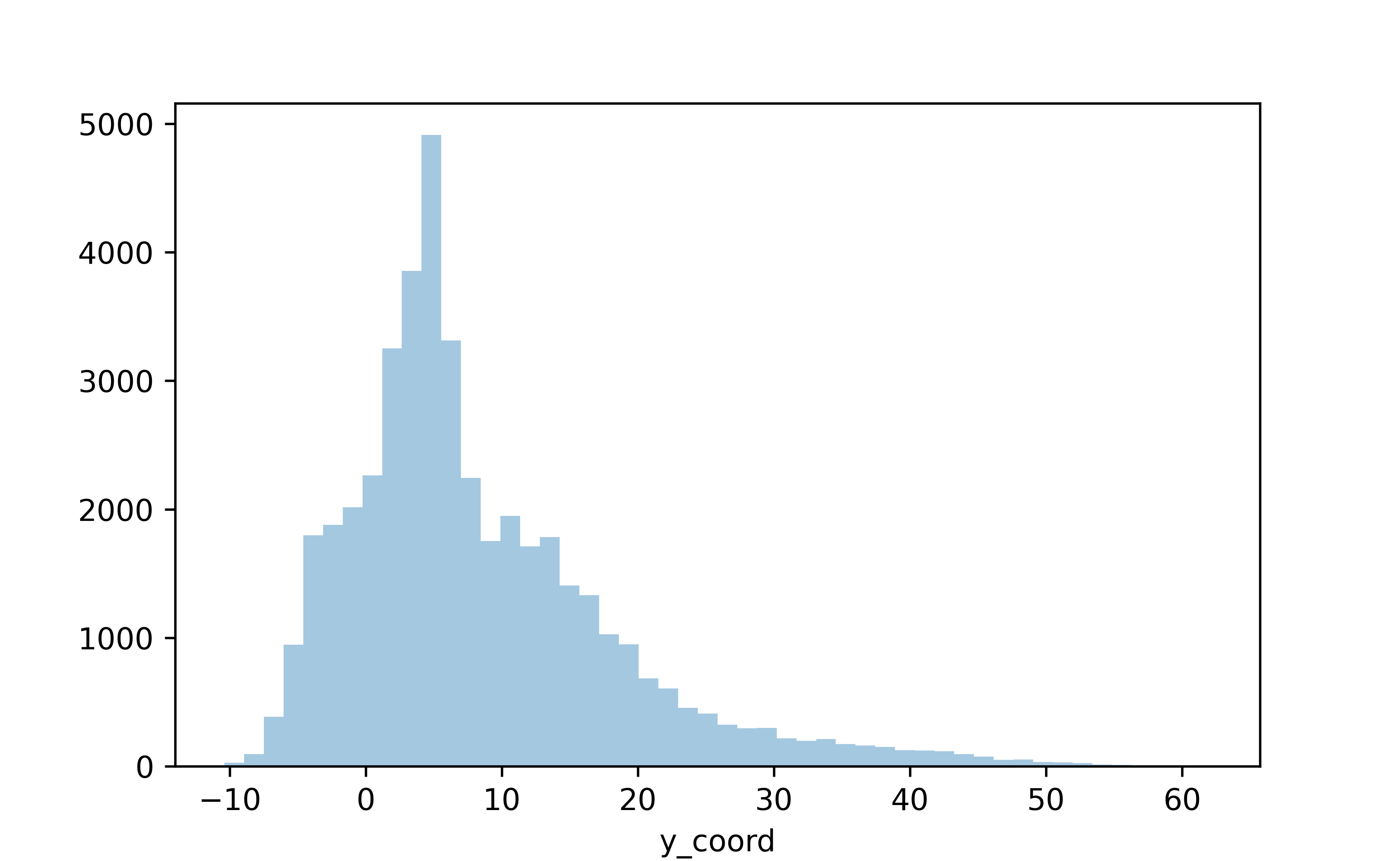 Nothing fancy here but we can already see some trends in where players pass the ball. Let’s look at the y direction