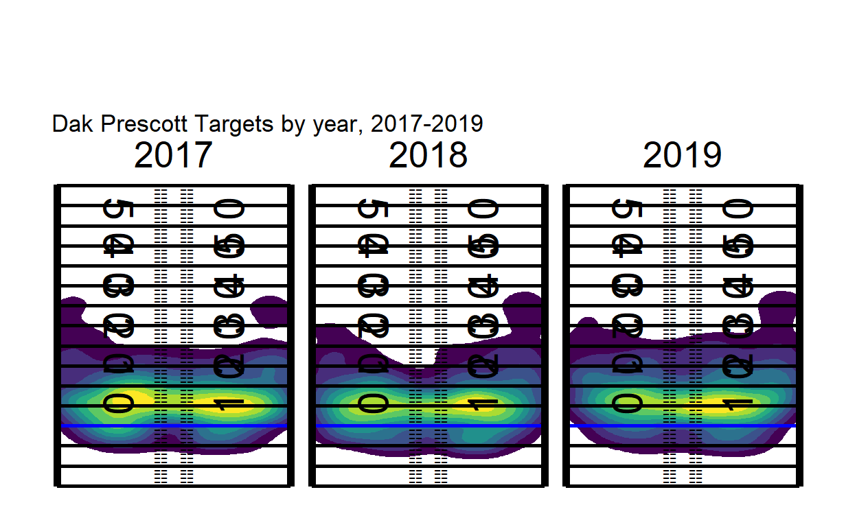 labs(title = "Dak Prescott Targets by year, 2017-2019")