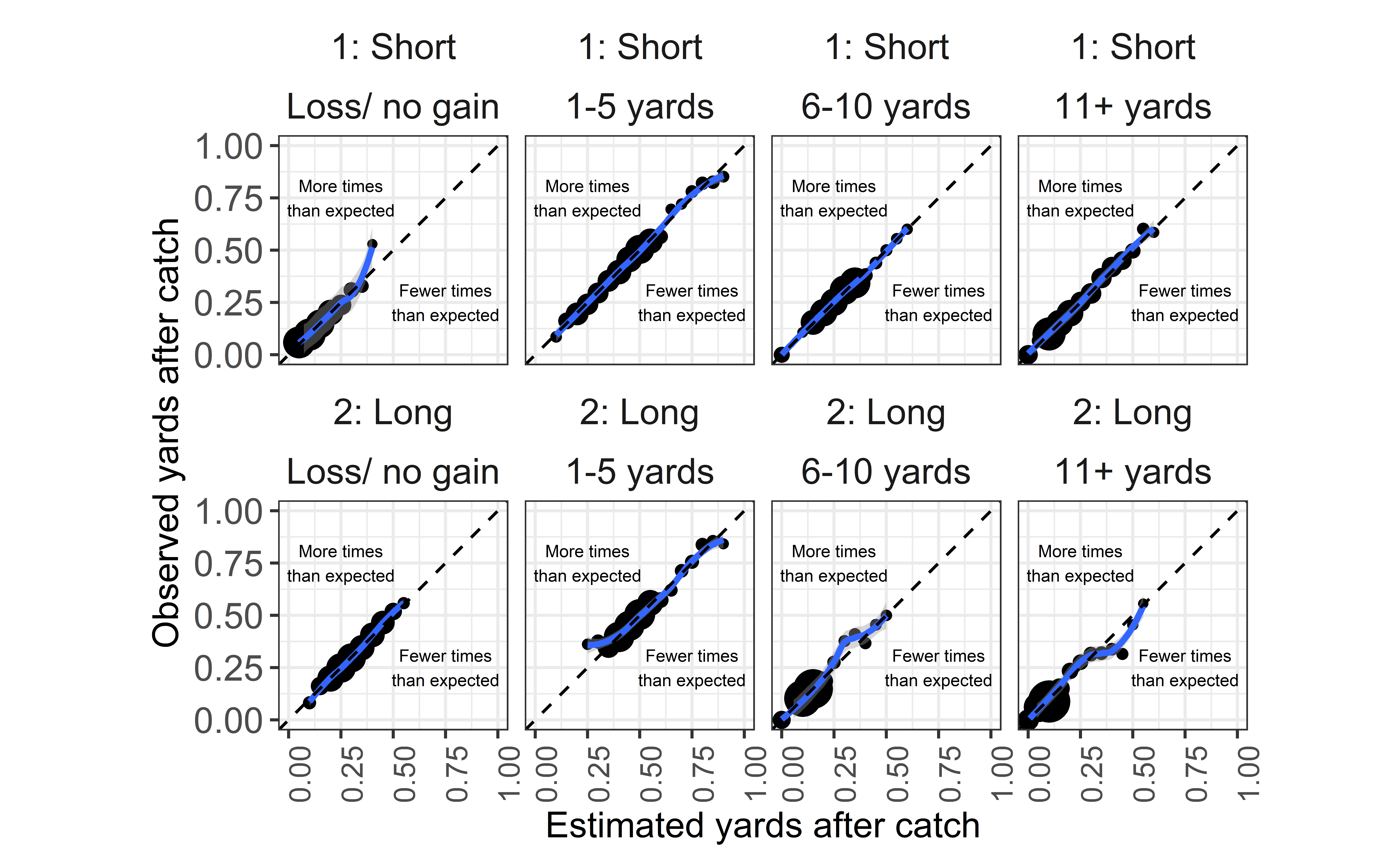 y = "Observed yards after catch"